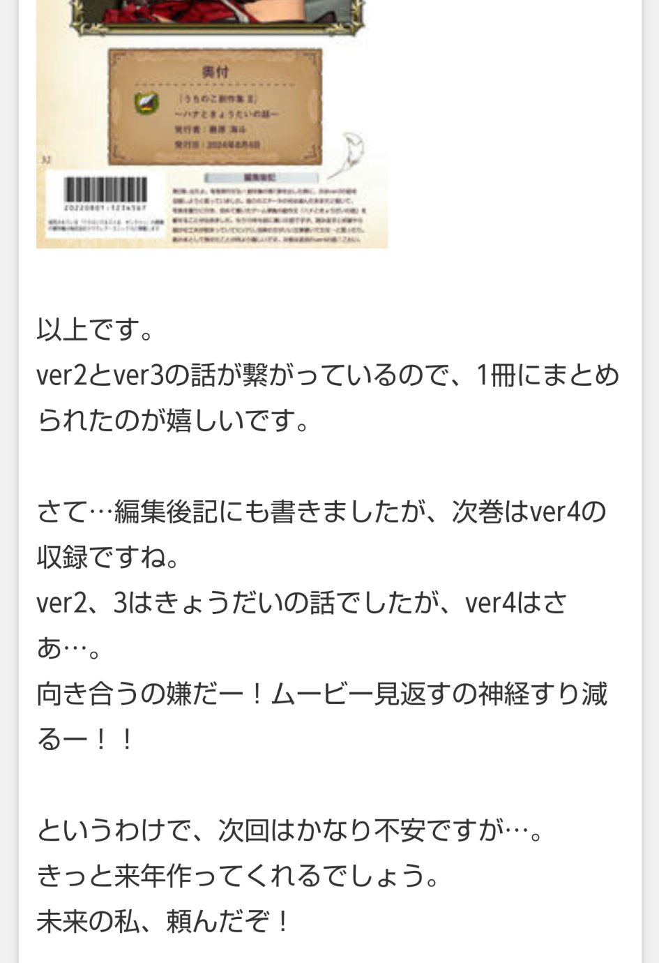 去年の本は、ver2と3のゲームストーリーに沿ったきょうだいの話。