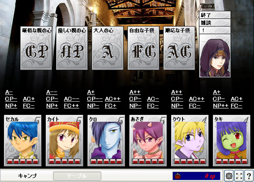 特性で自動判定または質問に答えて手動判定して、キャラの性格を解説してくれるシナリオ。